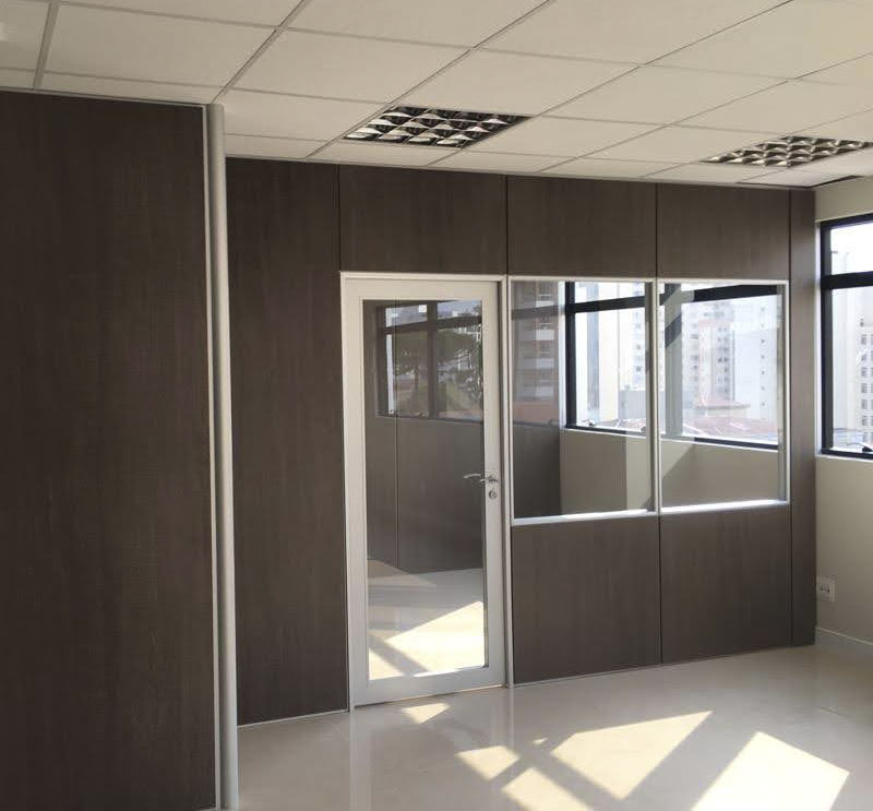 Executamos a instalação de divisórias operáveis com painéis e vidros, garantindo agilidade em ambientes corporativos, industriais, educacionais e comerciais.